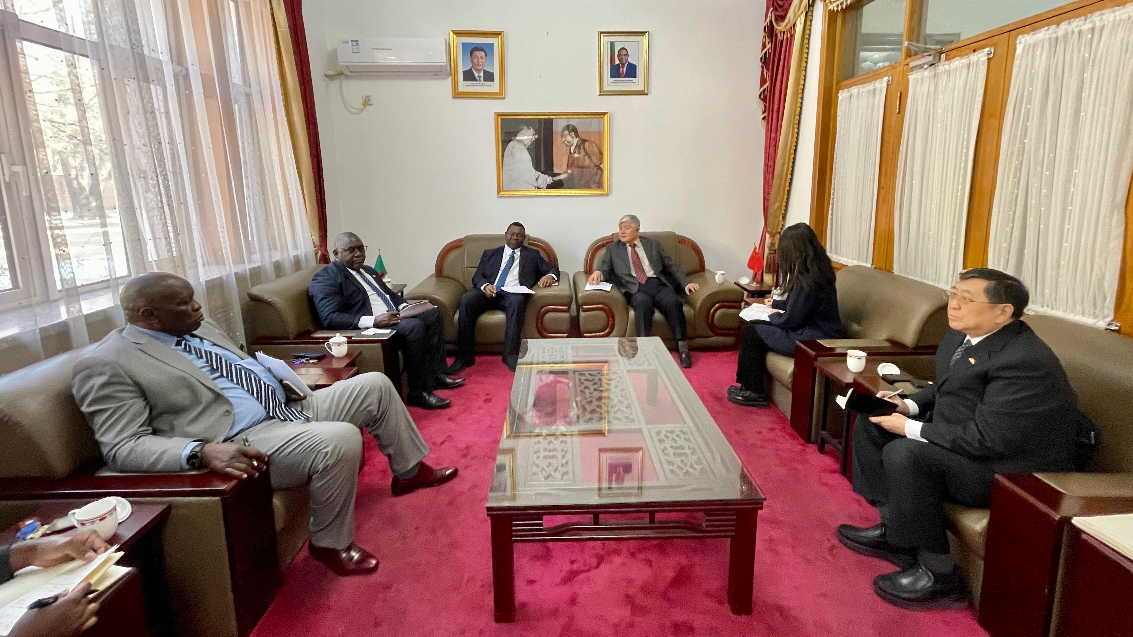 2024年2月5日,刁春和主席拜会赞比亚驻华大使齐乌卢先生(Ivan Zyuulu),双方就赞比亚论坛细节进行了深入交流。赞比亚驻华副大使希里洛先生(Alfred Likokoto Sililo)、经济参赞卡鲁班科瓦先生(Lordwell Kalubankwa),联盟主席助理张翔如,联办郑瑶参加会谈。